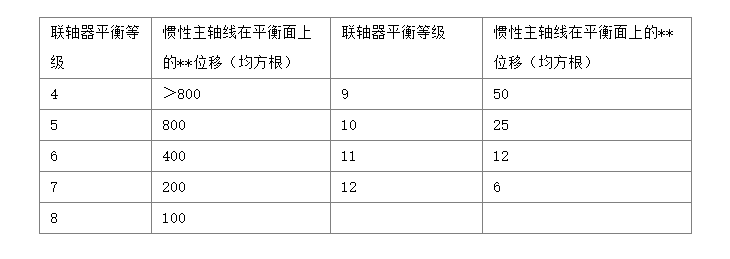 聯(lián)軸器平衡等級(jí) 慣性主軸線在平衡面上的**位移(均方根) 聯(lián)軸器平衡等級(jí) 慣性主軸線在平衡面上的**位移(均方根)